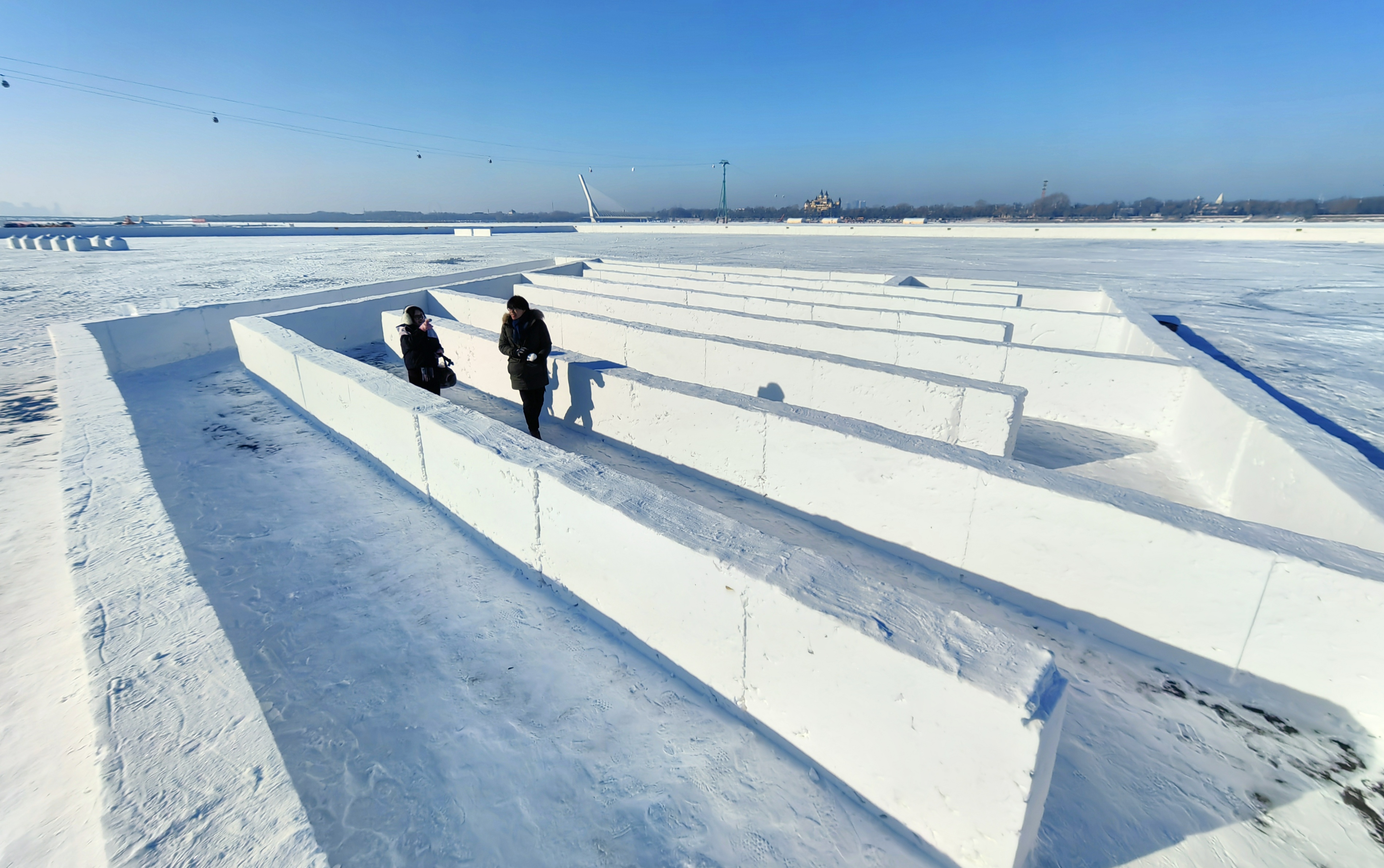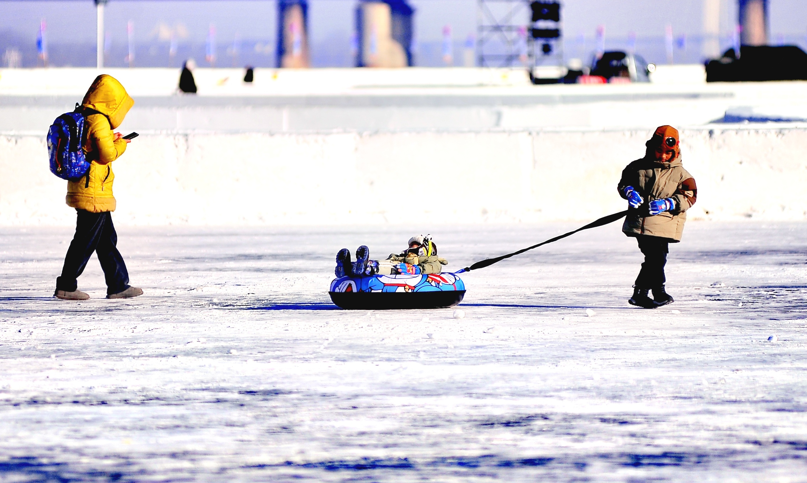 3日,哈尔滨市松花江冰雪嘉年华内,许多游客在游玩。这里不仅有收费项目,还有一些项目是免费供游客体验的。